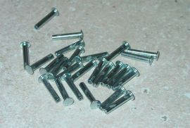 You are purchasing twenty five of the semi tubular rivets shown in the above picture. These are 1/8" rivets and 7/16" in length. Nickel plated to match most of the toy bumpers I sell in my store and available in many different lengths. I also carry the c-clamp style rivet tool for using these rivets to give your project a professional finished look. We are your one stop shop for all your toy restoration needs.