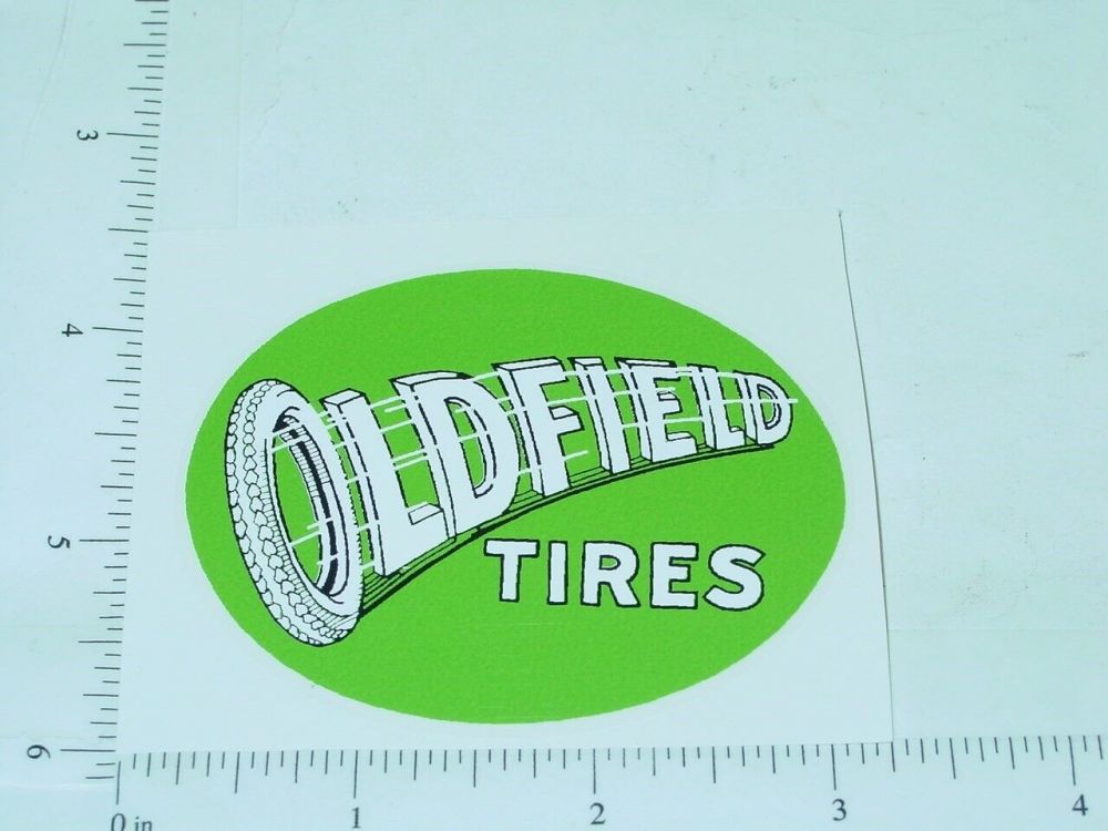 You are purchasing 1 of the decals pictured. This is a 3" wide logo for Oldfield Tires. Professionally printed with a Gerber Edge printer on high quality ultra thin peel and stick mylar and are diecut around the graphic, no trimming necessary. Will not fall apart like the water transfers sometimes do and will never fade or fall off. Full money back guarantee if not completely satisfied with the product.
