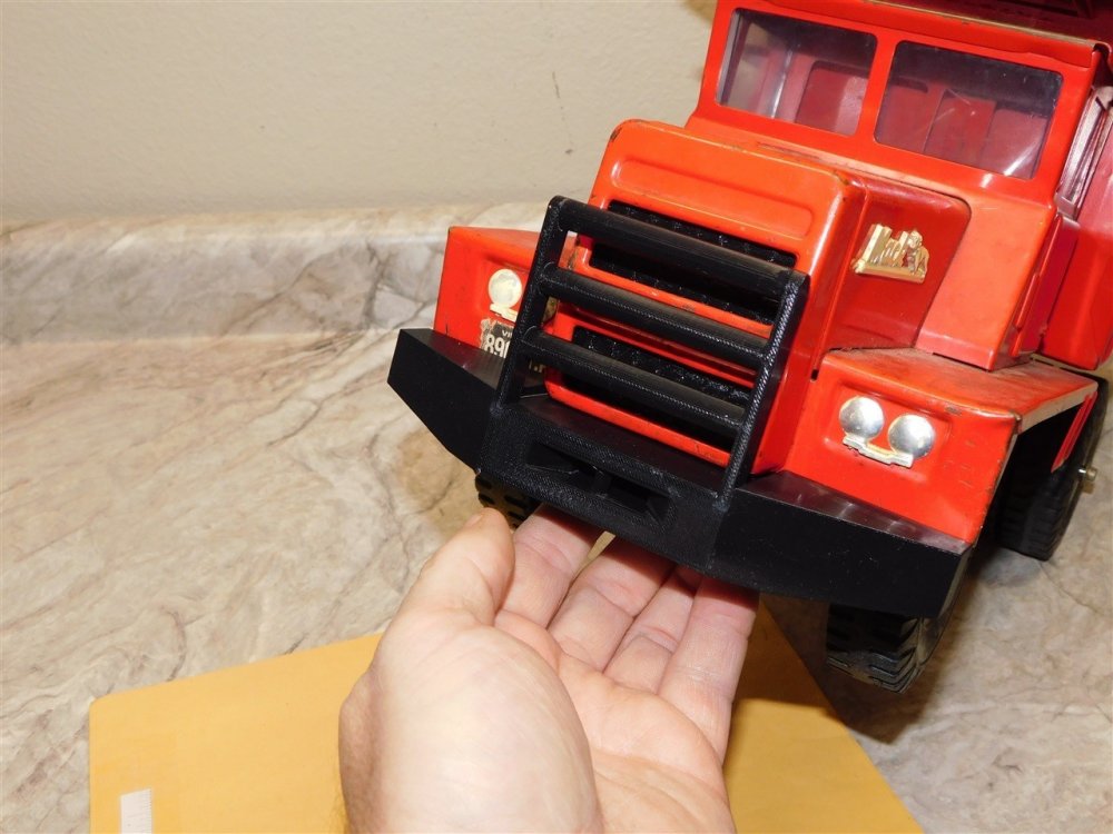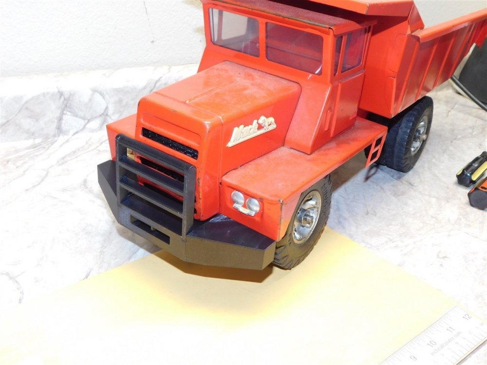 You are purchasing one of the above pictured part. This is a nicely made 3D printed replacement custom style bumper with grill guard for use on the large Buddy L Mack trucks. Printed in black as shown but also have white available in a separate listing. We made these with pins that go thru the chassis and also included with the part are a pair of spring clips to firmly attach it in place. We also are producing a stock bumper in both black and white and they are in a separate listing in our store as well. As with anything whether it is toy parts or full size car parts, some items may require some adjustment or fitting or slight modifications for use on your specific item. We do our best to get these replacement parts to as close to original specs as possible. If you are having difficulties with this, please feel free to message us for assistance. **Vehicles in pictures are NOT for sale, they are EXAMPLES ONLY**Proudly made right here in the good old USA from the trusted parts seller that's been in business for over 25 years. Others may do the blah blah blah but have changed their names/user ID's 4 or 5 times because they keep getting tossed off Ebay for being crooks. We are your one stop shop for all your toy restoration needs.