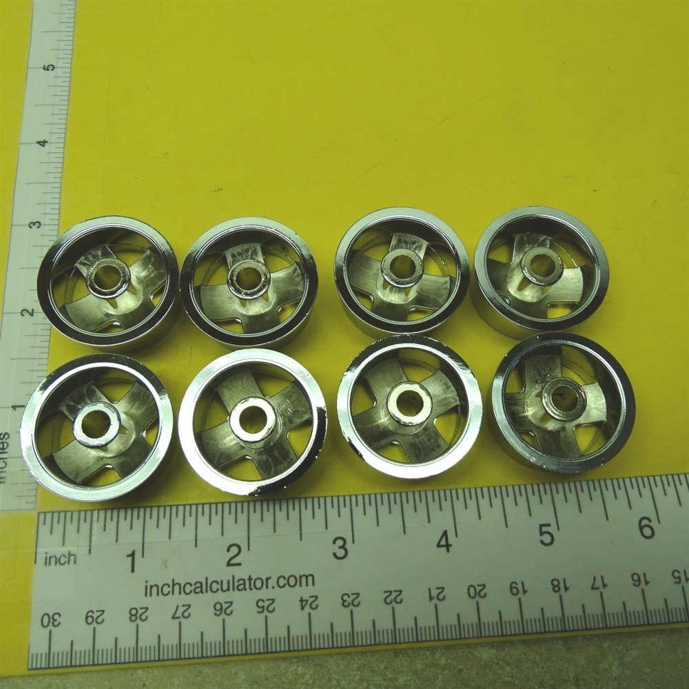You are purchasing eight (8) of the above pictured part. Picture shows both front and back. This is a nicely made cast zinc/aluminum alloy with chrome plating wheel for use on the Smith Miller L-Mack and GMC style trucks from the 1950's Also have these available without the chrome plate as well as the other style Smith Miller wheels is separate listings. Use ruler in picture for sizing questions. As with anything whether it is toy parts or full size car parts, some items may require some adjustment or fitting or slight modifications for use on your specific item. We do our best to get these replacement parts to as close to original specs as possible. If you are having difficulties with this, please feel free to message us for assistance. We are your one stop shop for all your toy restoration needs.