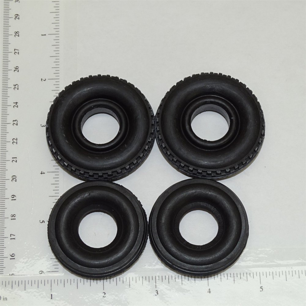 You are purchasing one set of the above pictured parts. Nice replacement true vulcanized rubber (will not flat spot from sitting) set of front and rear tires for use on the Cox Thimble Drome Champion racer. Will work only on the gas powered variation with the two piece wheels and are nice and pliable for easy installation. As with anything whether it is toy parts or full size car parts, some items may require some adjustment or fitting or slight modifications for use on your specific item. We do our best to get these replacement parts to as close to original specs as possible. If you are having difficulties with this, please feel free to message us for assistance.**Vehicles in pictures are NOT for sale, they are EXAMPLES ONLY** Be sure to check out my eBay store as I have over 500 toy parts listings and over 1500 toy decal listings. We are your one stop shop for all your toy restoration needs.
