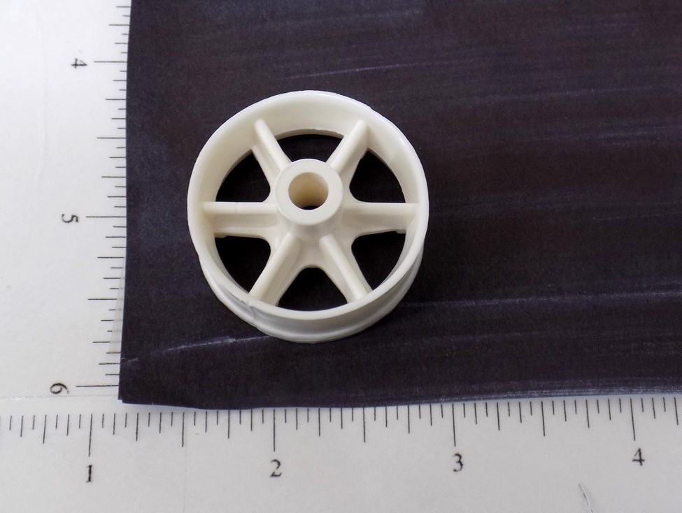 You are purchasing one of the above pictured part. Nice replacement plastic injection mold spoke wheel for use on the vintage Ertl Loadstar/Fleetstar International toy trucks. Picture shows both front and back but listing price is per ONE wheel only. Also, I do not yet have tires for these but I've included a picture showing my custom Smith Miller GMC style tire mounted on the wheel to show you how good they look with these particular tires. Tires are available for purchase in a separate listing. As with anything whether it is toy parts or full size car parts, some items may require some adjustment or fitting or slight modifications for use on your specific item. We do our best to get these replacement parts to as close to original specs as possible. If you are having difficulties with this, please feel free to message us for assistance.**Vehicles in pictures are NOT for sale, they are EXAMPLES ONLY** We are your one stop shop for all your toy restoration needs.