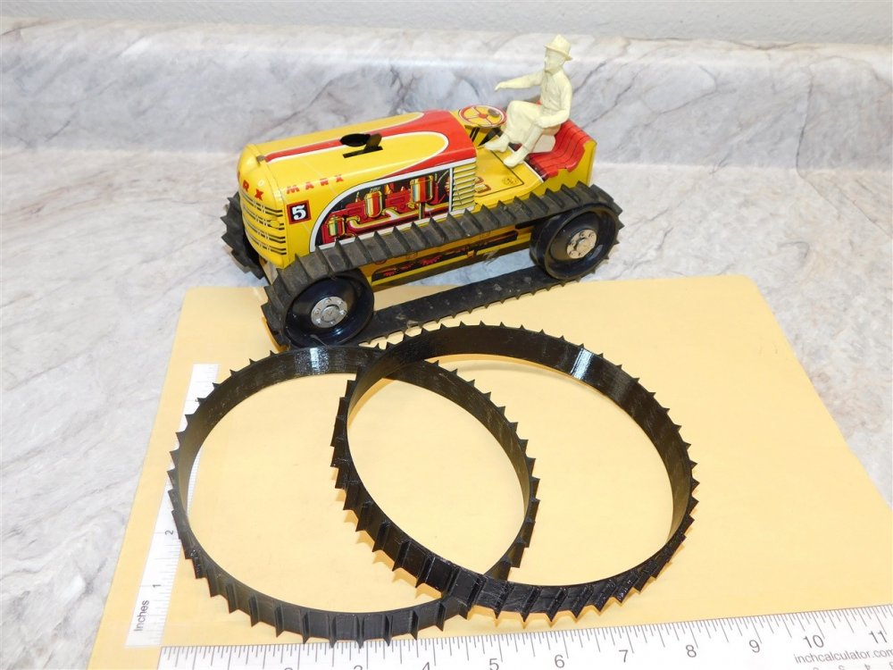 You are purchasing one pair/set of the above pictured parts. Very nice 3D printed plastic tracks for the Marx tractor/crawler as pictured. Tracks measure 3/4" wide and have a circumference of 18". They may very well fit other toys as well which is why we included the measurements but we designed them to fit the particular toy shown. As with anything whether it is toy parts or full size car parts, some items may require some adjustment or fitting or slight modifications for use on your specific item. We do our best to get these replacement parts to as close to original specs as possible. If you are having difficulties with this, please feel free to message us for assistance. Truck shown in pictures is for reference only and is NOT included in this listing. We are your one stop shop for all your toy restoration needs.