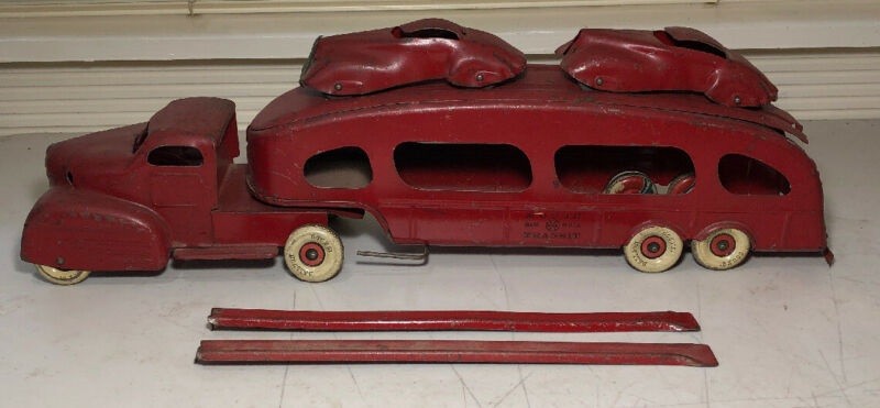 You are purchasing one pair as shown in the above picture. These are a nicely done stamped steel loading ramps toy part for use on the Marx car carrier and auto transport trucks. Please reference picture for sizing information. As with anything whether it is toy parts or full size car parts, some items may require some adjustment or fitting or slight modifications for use on your specific item. We do our best to get these replacement parts to as close to original specs as possible. If you are having difficulties with this, please feel free to message us for assistance.**Vehicles in pictures are NOT for sale, they are EXAMPLES ONLY** We are your one stop shop for all your toy restoration needs.