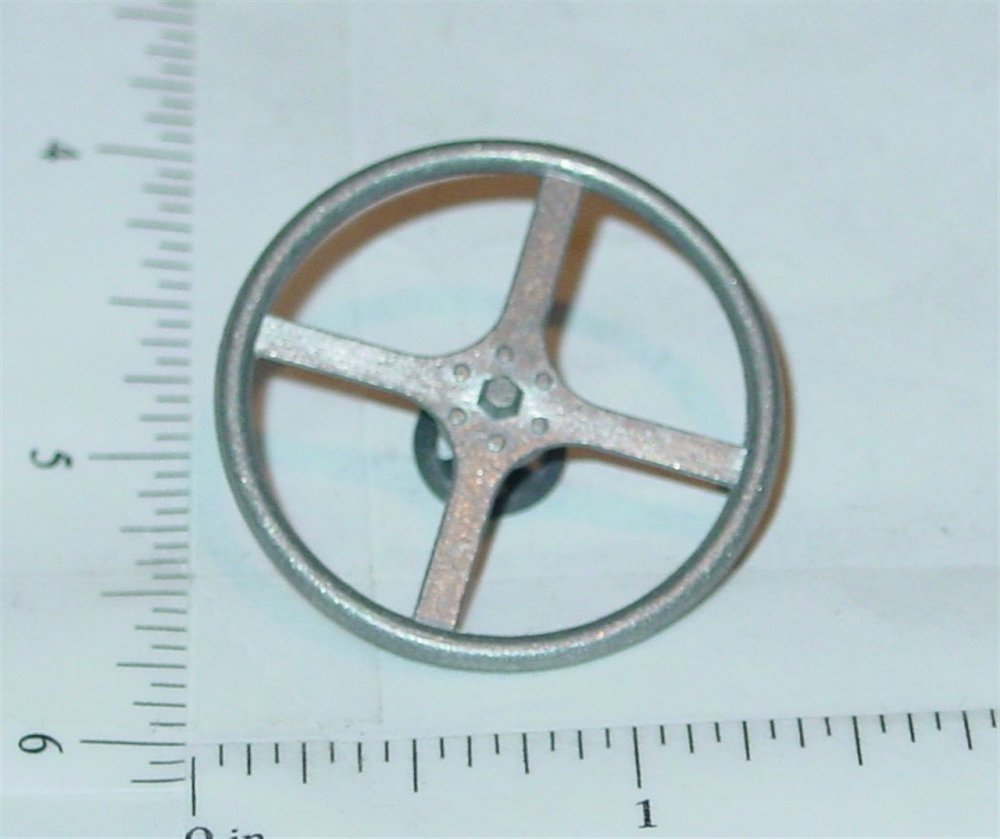 You are purchasing one of the above pictured parts. Nice replacement zinc aluminum alloy cast steering wheel part for the Ohlsson & Rice tether race car. Works on both the pusher or gas powered variations and comes with the clips as shown.. Slightly darker finish as cast but they will actually polish up quite nicely if you so choose as well. As with anything whether it is toy parts or full size car parts, some items may require some adjustment or fitting or slight modifications for use on your specific item. We do our best to get these replacement parts to as close to original specs as possible. If you are having difficulties with this, please feel free to message us for assistance.**Vehicles in pictures are NOT for sale, they are EXAMPLES ONLY** We are your one stop shop for all your toy restoration needs.