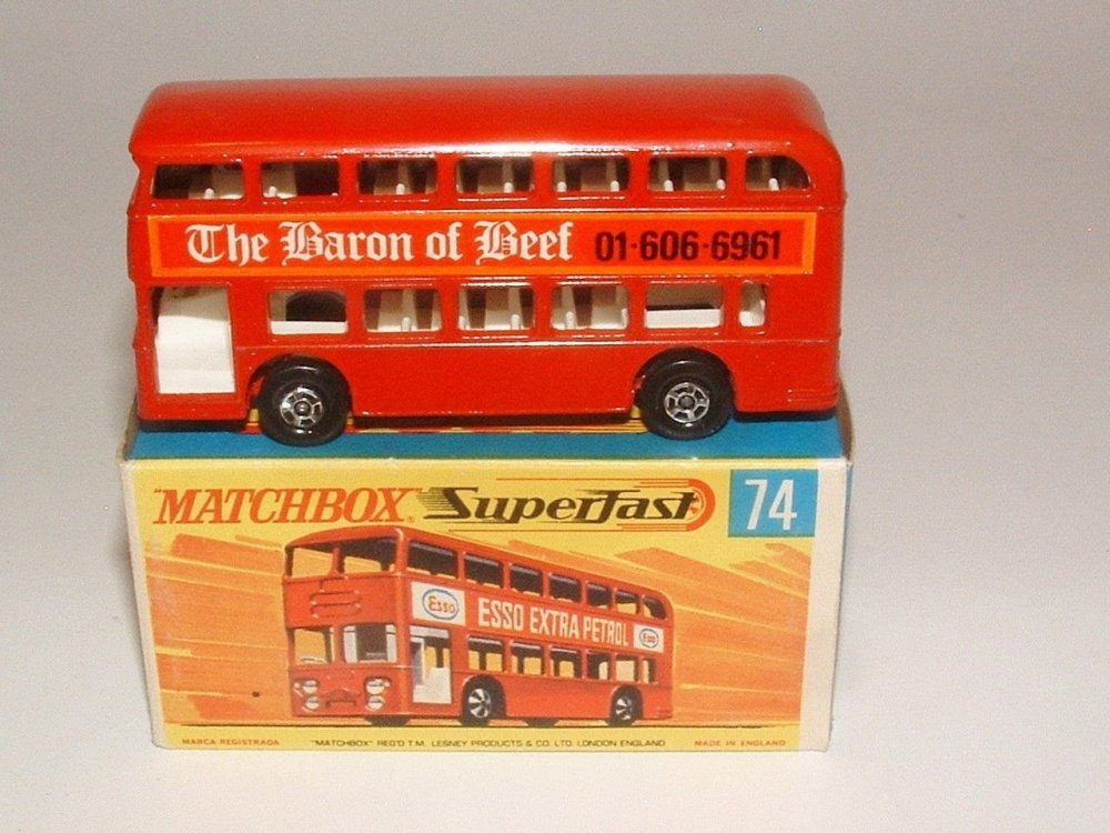 Pair Superfast Matchbox #74 Baron of Beef Daimler Bus Stickers