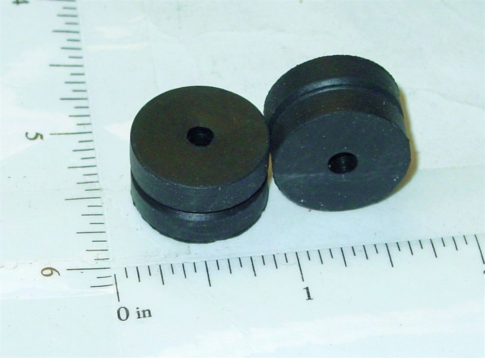 You are purchasing one pair of the parts as shown in the above picture. Nicely made vulcanized rubber tires for use on the rigid semi trailer front stand from the old Tonka semi trucks from the 50's and 60's. Also have the flip up style tired and the stands for both available in separate listings. As with anything whether it is toy parts or full size car parts, some items may require some adjustment or fitting or slight modifications for use on your specific item. We do our best to get these replacement parts to as close to original specs as possible. If you are having difficulties with this, please feel free to message us for assistance. We are your one stop shop for all your toy restoration needs.