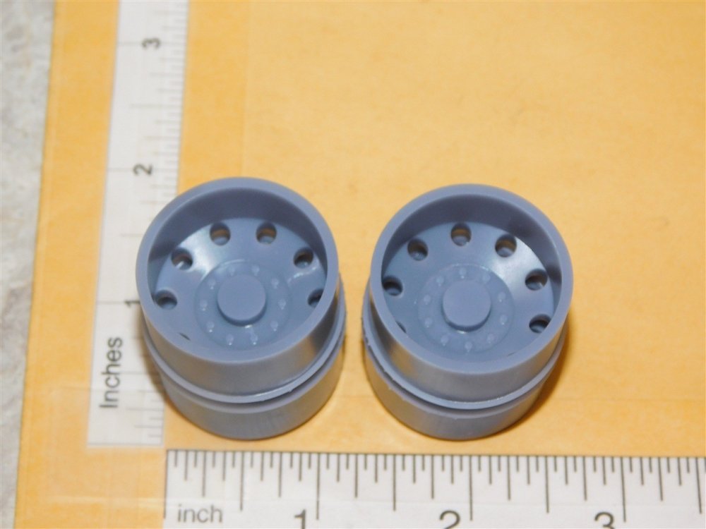 You are purchasing one pair of the above pictured part. This is a nicely made 3D printed Budd style rear dual truck wheels. They will work on pretty much any brand you wish and are used with a 3/16" axle. Wheels are printed in gray as shown with excellent detail and will take any paint designed for plastic as well as the chrome pens and such that modelers use. They will fit our new custom tires (part number CUP-008 or CUP-010) as well as any of our Smith Miller tires as shown in the last pictures. For the fronts check out our new part number CUP-001 as they are created with the same pattern. Listing is for the WHEELS ONLY, tires are shown for reference but NOT included and must be purchased separately . **Vehicles in pictures are NOT for sale, they are EXAMPLES ONLY** We are your one stop shop for all your toy restoration needs.