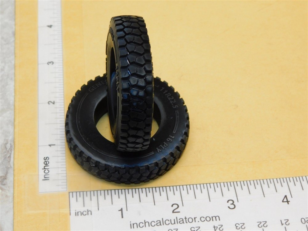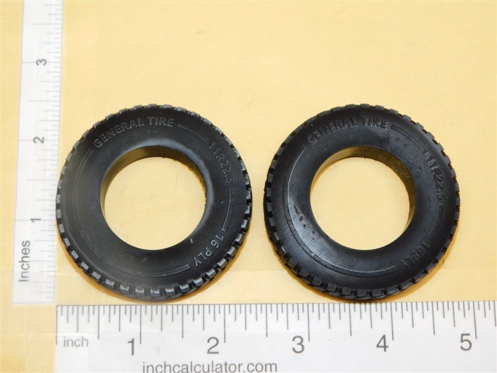 You are purchasing one pair of the above pictured part. This is a nicely made 3D printed rear or drive tire toy part. Designed for use on our custom Budd style truck wheels but will also fit on the plated or non-plated wheels we offer in our Smith Miller section. Our new custom wheels are part number CUP-001 or CUP-005.. For the steer or trailer tires check out our new part number CUP-008 as they are the same size with a less aggressive tread pattern. **Vehicles in pictures are NOT for sale, they are EXAMPLES ONLY** We are your one stop shop for all your toy restoration needs.
