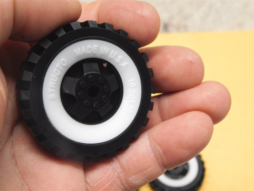 `You are purchasing one set of 4 of the parts as shown in the above picture. 3D printed plastic wheel and whitewall insert for use on the Structo trucks from the 50's and 60's. Slightly larger version with the outer diameter just over 2". Designed for 3/16" rod stock axles with the hole slightly undersized for a good tight compression fit We do also have the whitewalls available separately in a different listing if you need just those. Also have these available individually in case you only need one or two. As with anything whether it is toy parts or full size car parts, some items may require some adjustment or fitting or slight modifications for use on your specific item. We do our best to get these replacement parts to as close to original specs as possible. If you are having difficulties with this, please feel free to message us for assistance.**Vehicles in pictures are NOT for sale, they are EXAMPLES ONLY** We are your one stop shop for all your toy restoration needs.