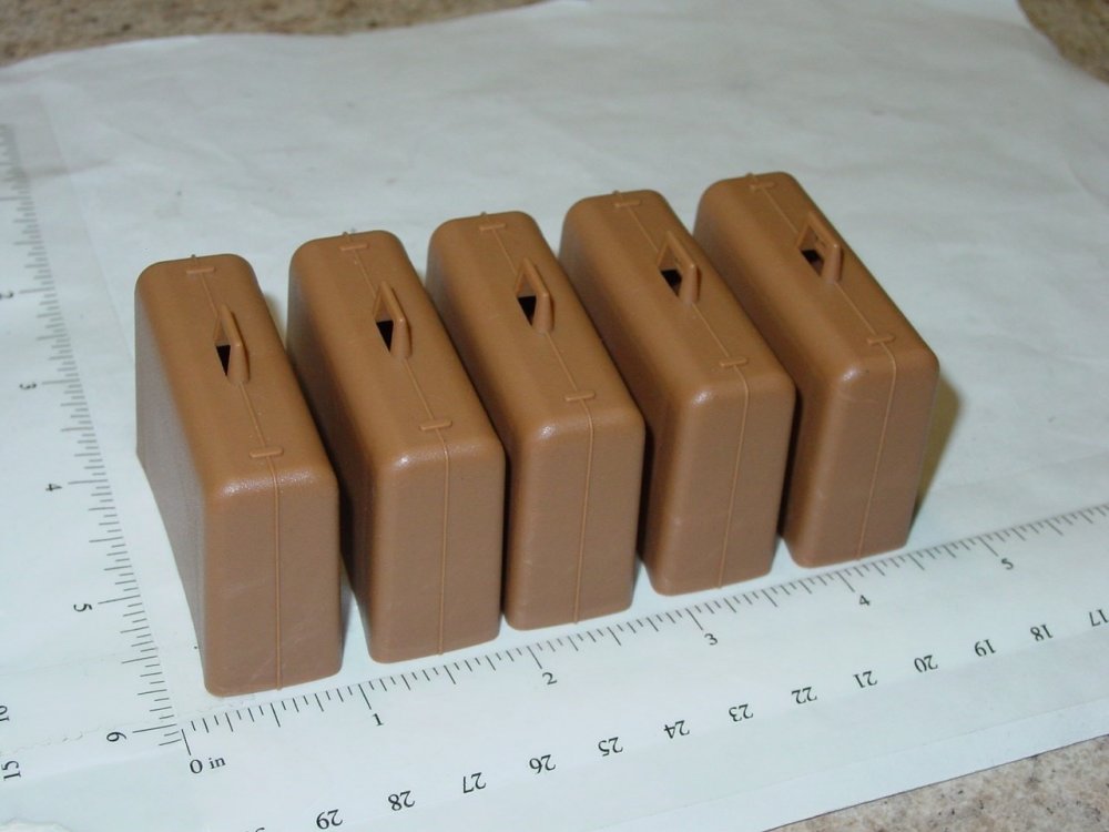 You are purchasing one group of the parts as shown in the above picture. Listing is for FIVE BROWN suitcases. Nicely made injection mold plastic suitcase for use on the Tonka airlines trailers as well as the outdoor leisure sets. Also have them available in red and white and in groups of 5 for each color as well. As with anything whether it is toy parts or full size car parts, some items may require some adjustment or fitting or slight modifications for use on your specific item. We do our best to get these replacement parts to as close to original specs as possible. If you are having difficulties with this, please feel free to message us for assistance. We are your one stop shop for all your toy restoration needs.