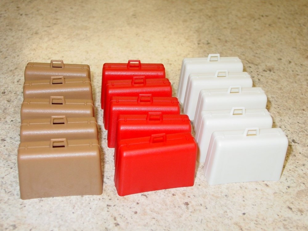 You are purchasing one group of the parts as shown in the above picture. Listing is for fifteen total suitcases, 5 brown, 5 red, and 5 white. Nicely made injection mold plastic suitcase for use on the Tonka airlines trailers as well as the outdoor leisure sets. Also have them available in red and white and in groups of 5 for each color as well. As with anything whether it is toy parts or full size car parts, some items may require some adjustment or fitting or slight modifications for use on your specific item. We do our best to get these replacement parts to as close to original specs as possible. If you are having difficulties with this, please feel free to message us for assistance. We are your one stop shop for all your toy restoration needs.