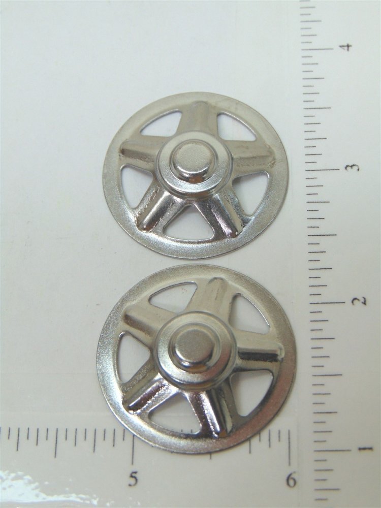 You are purchasing one pair of the parts as shown in the above picture. Nicely made stamped steel with nickel plating hubcaps for use on the old Tonka toy trucks from the 60's and 70's. Also have the triangle hole, smooth, and round hole variations as well in separate listings. Use ruler in picture for sizing info. As with anything whether it is toy parts or full size car parts, some items may require some adjustment or fitting or slight modifications for use on your specific item. We do our best to get these replacement parts to as close to original specs as possible. If you are having difficulties with this, please feel free to message us for assistance.International purchasers, to receive combined shipping on multiple items won, please DO NOT pay until you've received an invoice from us to reflect the multiple items. Be sure to check out our eBay Store as we have over 500 toy parts listings and over 1500 toy decal listings. We are your one stop shop for all your toy restoration needs.