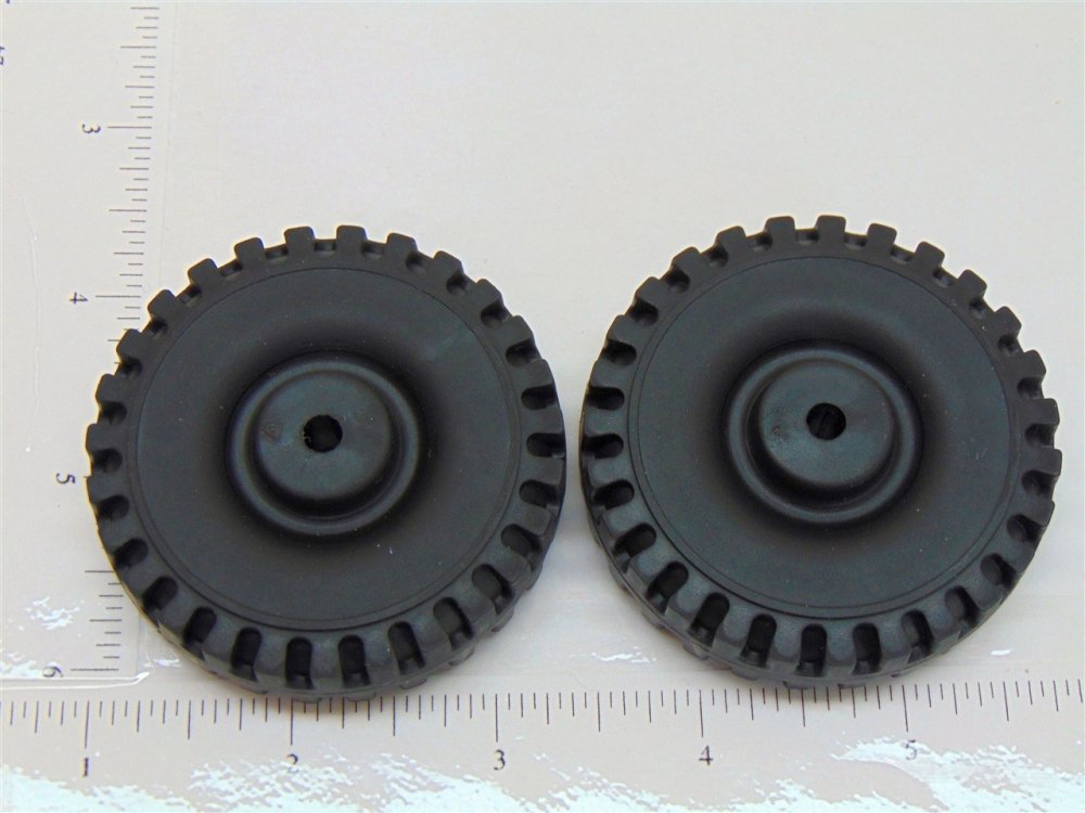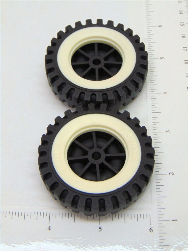 You are purchasing one pair of the parts as shown in the above picture. Nicely made plastic tires and whitewalls for use on the old Tonka toy trucks from the 60's and 70's. As with anything whether it is toy parts or full size car parts, some items may require some adjustment or fitting or slight modifications for use on your specific item. We do our best to get these replacement parts to as close to original specs as possible. If you are having difficulties with this, please feel free to message us for assistance.International purchasers, to receive combined shipping on multiple items won, please DO NOT pay until you've received an invoice from us to reflect the multiple items. Be sure to check out our eBay Store as we have over 500 toy parts listings and over 1500 toy decal listings. We are your one stop shop for all your toy restoration needs.