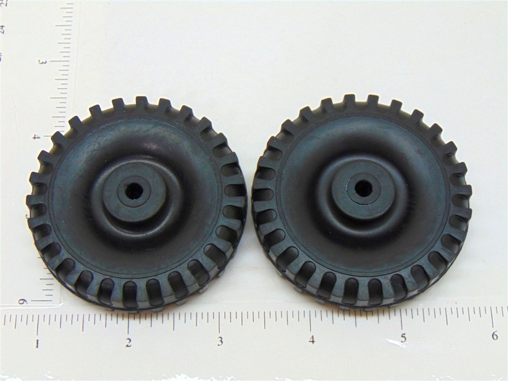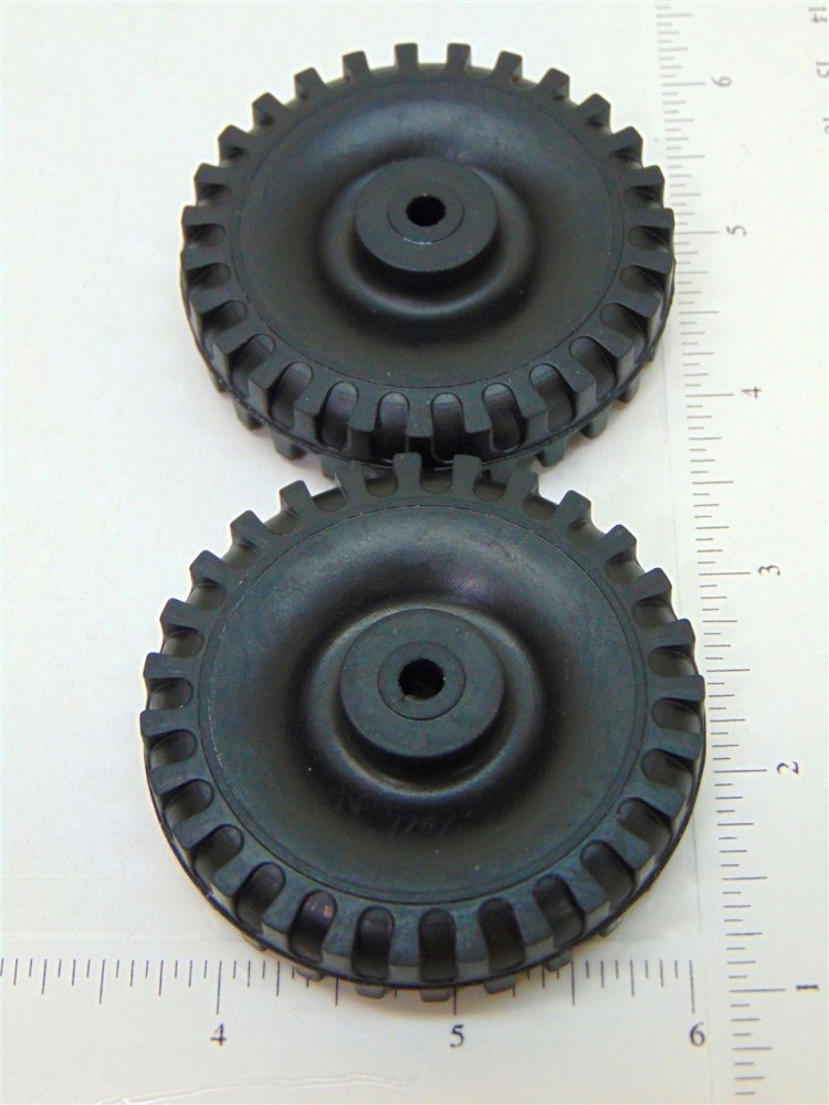 You are purchasing one pair of the parts as shown in the above picture. Nicely made vulcanized rubber tires for use on the old Tonka toy trucks from the 50's and 60's that take the whitewall inserts. As with anything whether it is toy parts or full size car parts, some items may require some adjustment or fitting or slight modifications for use on your specific item. We do our best to get these replacement parts to as close to original specs as possible. If you are having difficulties with this, please feel free to message us for assistance.**Vehicles in pictures are NOT for sale, they are EXAMPLES ONLY**International purchasers, to receive combined shipping on multiple items won, please DO NOT pay until you've received an invoice from us to reflect the multiple items. Be sure to check out our eBay Store as we have over 500 toy parts listings and over 1500 toy decal listings. We are your one stop shop for all your toy restoration needs.