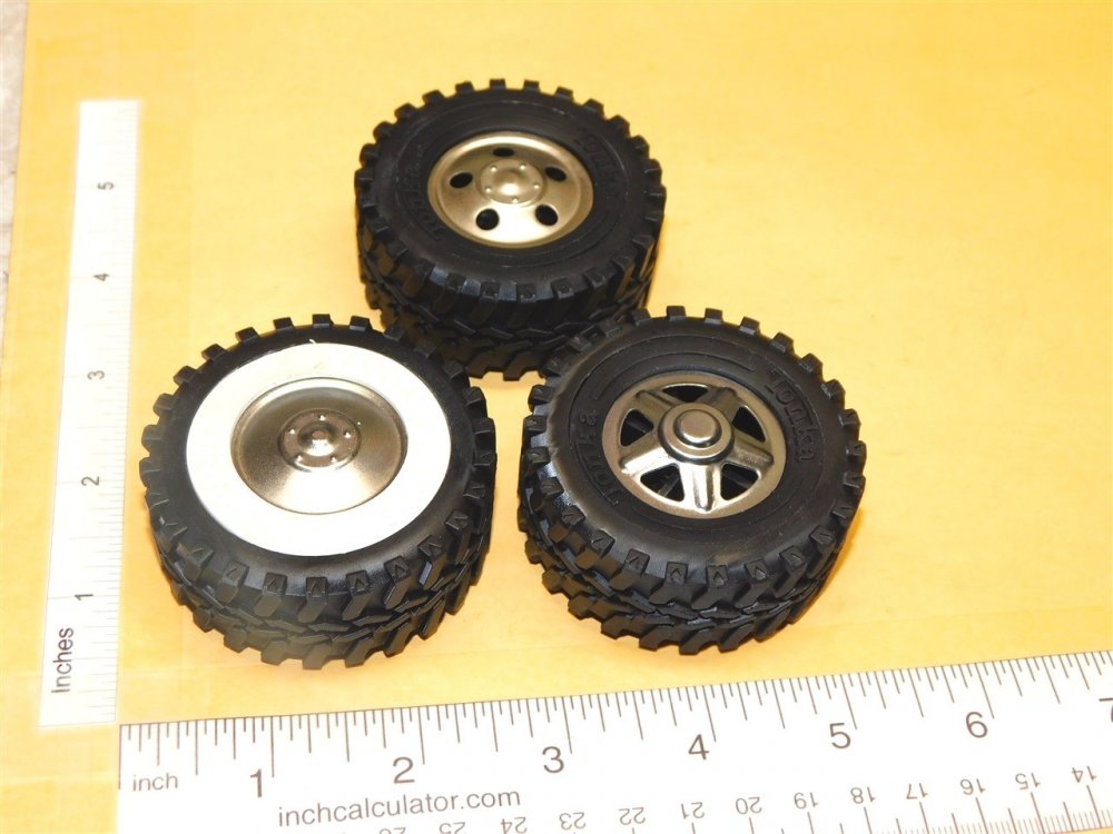 You are purchasing one set of 4 of the part as shown in the above picture. Nicely made 3D printed plastic custom mud tire version wheel for use on your custom Tonka builds. These wheels will accept any of our available white walls or black walls (available separately) as shown on the samples pictured. Just to clarify, listing is for WHEELS ONLY, side wall inserts and hubcaps sold SEPARATELY. As with anything whether it is toy parts or full size car parts, some items may require some adjustment or fitting or slight modifications for use on your specific item. We do our best to get these replacement parts to as close to original specs as possible. If you are having difficulties with this, please feel free to message us for assistance.**Vehicle in pictures are NOT for sale, they are EXAMPLES ONLY** We are your one stop shop for all your toy restoration needs.