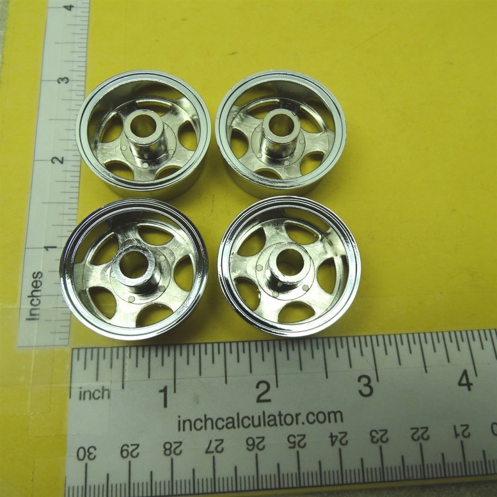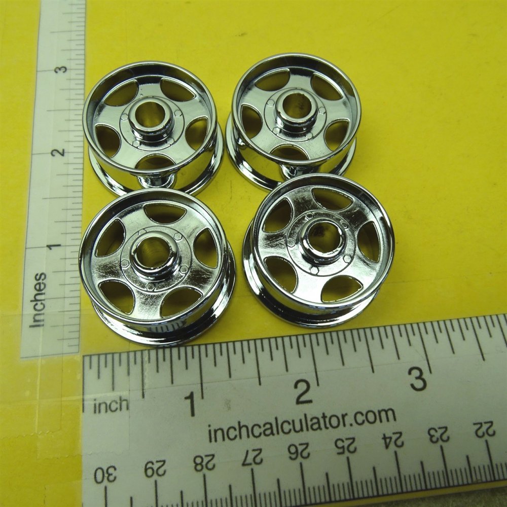 You are purchasing four (4) of the above pictured part. Picture shows both front and back. This is a nicely made cast zinc/aluminum with chrome plating alloy wheel for use on the Smith Miller L-Mack and B-Mack style trucks from the 1950's Also have these available without the chrome plate as well as the other style Smith Miller wheels is separate listings. Use ruler in picture for sizing questions. As with anything whether it is toy parts or full size car parts, some items may require some adjustment or fitting or slight modifications for use on your specific item. We do our best to get these replacement parts to as close to original specs as possible. If you are having difficulties with this, please feel free to message us for assistance. We are your one stop shop for all your toy restoration needs.