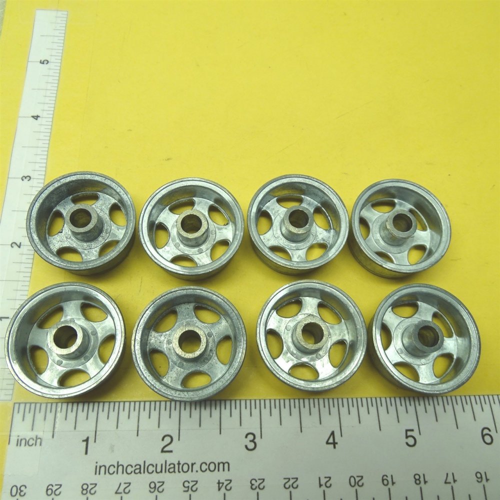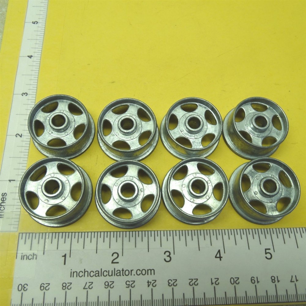 You are purchasing eight (8) of the above pictured part. Picture shows both front and back. This is a nicely made cast zinc/aluminum alloy wheel for use on the Smith Miller L-Mack and B-Mack style trucks from the 1950's Also have these available chrome plated as well as the other style Smith Miller wheels is separate listings. Use ruler in picture for sizing questions. As with anything whether it is toy parts or full size car parts, some items may require some adjustment or fitting or slight modifications for use on your specific item. We do our best to get these replacement parts to as close to original specs as possible. If you are having difficulties with this, please feel free to message us for assistance. We are your one stop shop for all your toy restoration needs.