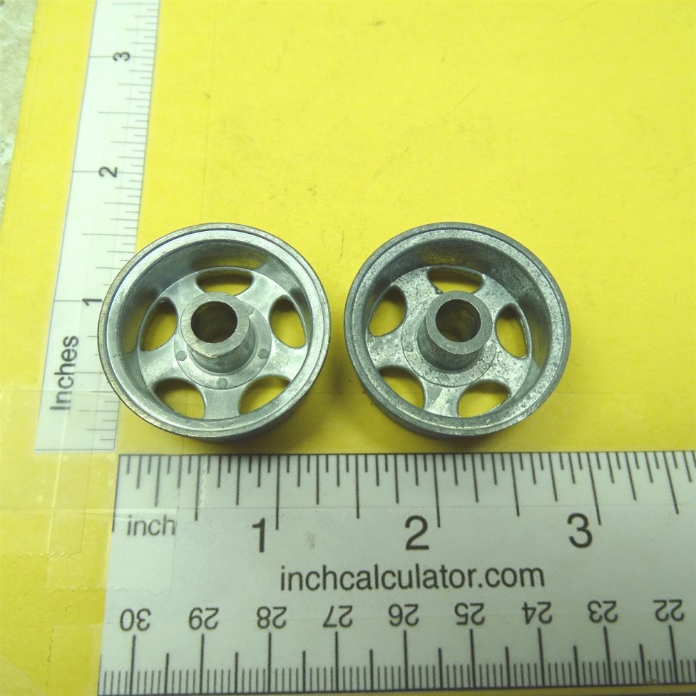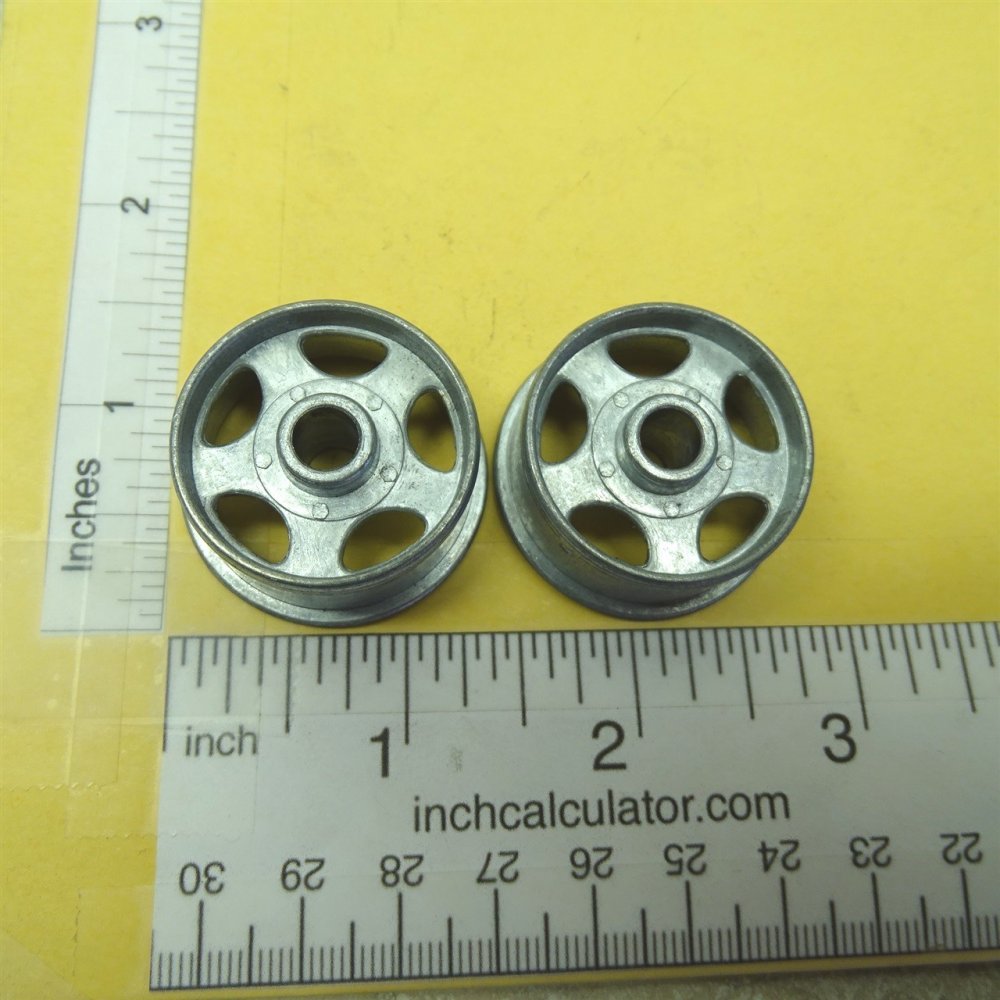 You are purchasing two (2) of the above pictured part. Picture shows both front and back. This is a nicely made cast zinc/aluminum alloy wheel for use on the Smith Miller L-Mack and B-Mack style trucks from the 1950's Also have these available chrome plated as well as the other style Smith Miller wheels is separate listings. Use ruler in picture for sizing questions. As with anything whether it is toy parts or full size car parts, some items may require some adjustment or fitting or slight modifications for use on your specific item. We do our best to get these replacement parts to as close to original specs as possible. If you are having difficulties with this, please feel free to message us for assistance. We are your one stop shop for all your toy restoration needs.