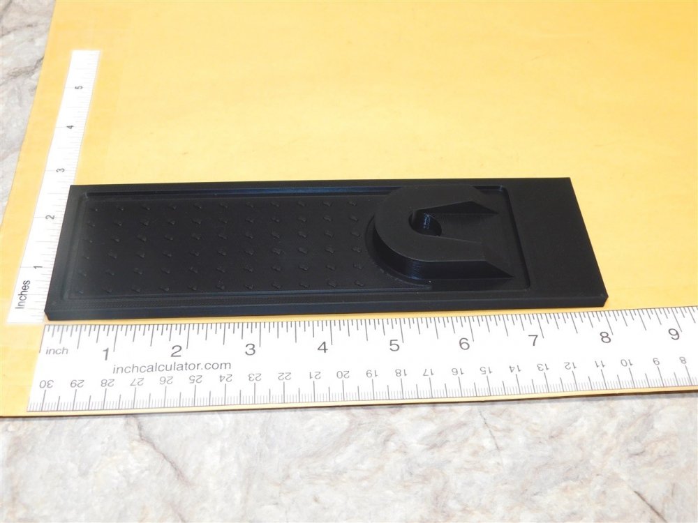 You are purchasing one of the above pictured part. This is a nicely made custom 3D printed 5th wheel plate for use on Smith Miller MIC and L Mack trucks. This allows you to take a long frame chassis with the stock duals set up and convert it to a conventional semi cab. Plastic plate simply glues in place on the chassis rails and is paintable or use in the black it come in. Texture pattern both top and bottom gives nice finished look to your project. Measures about 2.5" by 8" and again is sized for use on the Smith Millers but may also work in other custom applications as well. As with anything whether it is toy parts or full size car parts, some items may require some adjustment or fitting or slight modifications for use on your specific item. We do our best to get these replacement parts to as close to original specs as possible. If you are having difficulties with this, please feel free to message us for assistance. Will get a picture of the product installed on a Smith Miller when we get the opportunity. We are your one stop shop for all your toy restoration needs.