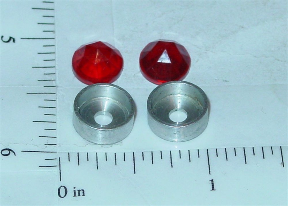 You are purchasing one pair of the above pictured parts. This is a nicely made spun aluminum bezel with plastic jewel set that was used to cover the rear bumper screws on the Smith Miller MIC wrecker tow truck made in the 1950's. Also have these available in different listings in sets of 4 in both green and red to complete the MIC semi trailers. Use ruler in picture for sizing questions. As with anything whether it is toy parts or full size car parts, some items may require some adjustment or fitting or slight modifications for use on your specific item. We do our best to get these replacement parts to as close to original specs as possible. If you are having difficulties with this, please feel free to message us for assistance.**Vehicles in pictures are NOT for sale, they are EXAMPLES ONLY** We are your one stop shop for all your toy restoration needs.