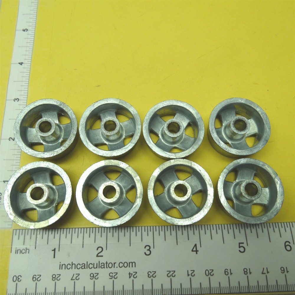 You are purchasing eight (8) of the above pictured part. Picture shows both front and back. This is a nicely made cast zinc/aluminum alloy wheel for use on the Smith Miller L-Mack and GMC style trucks from the 1950's Also have these available chrome plated as well as the other style Smith Miller wheels is separate listings. Use ruler in picture for sizing questions. As with anything whether it is toy parts or full size car parts, some items may require some adjustment or fitting or slight modifications for use on your specific item. We do our best to get these replacement parts to as close to original specs as possible. If you are having difficulties with this, please feel free to message us for assistance. We are your one stop shop for all your toy restoration needs.