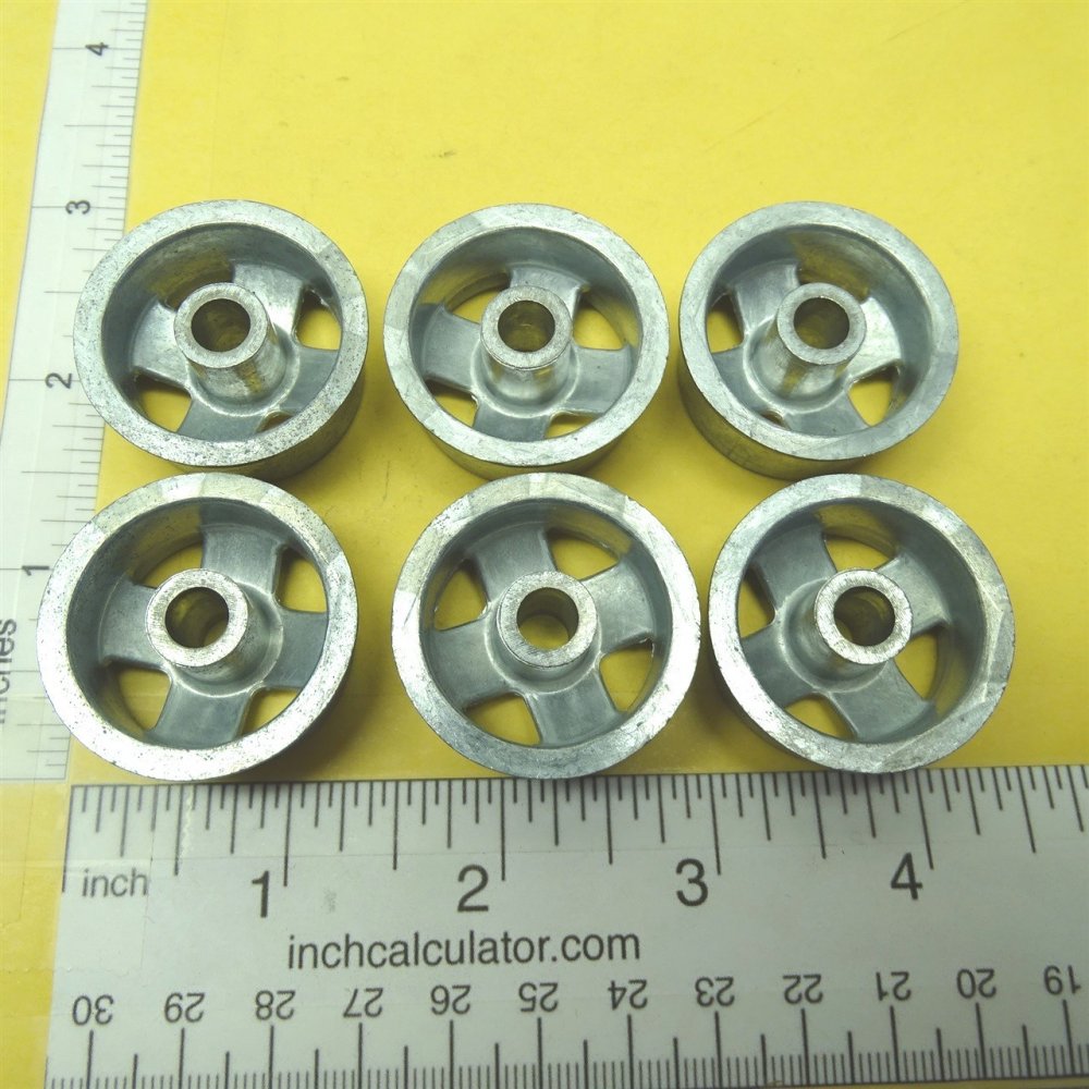 You are purchasing six (6) of the above pictured part. Picture shows both front and back. This is a nicely made cast zinc/aluminum alloy wheel for use on the Smith Miller L-Mack and GMC style trucks from the 1950's Also have these available chrome plated as well as the other style Smith Miller wheels is separate listings. Use ruler in picture for sizing questions. As with anything whether it is toy parts or full size car parts, some items may require some adjustment or fitting or slight modifications for use on your specific item. We do our best to get these replacement parts to as close to original specs as possible. If you are having difficulties with this, please feel free to message us for assistance. We are your one stop shop for all your toy restoration needs.