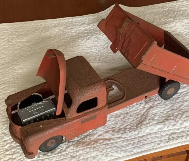 You are purchasing one of the parts as shown in the above picture. Nicely made stamped steel hood for use on the old Structo toy trucks from the 50's and 60's. This is the later wider version and comes with the spring clip to keep it closed as pictured. Use ruler in picture for sizing info. As with anything whether it is toy parts or full size car parts, some items may require some adjustment or fitting or slight modifications for use on your specific item. We do our best to get these replacement parts to as close to original specs as possible. If you are having difficulties with this, please feel free to message us for assistance.**Vehicles in pictures are NOT for sale, they are EXAMPLES ONLY** We are your one stop shop for all your toy restoration needs.