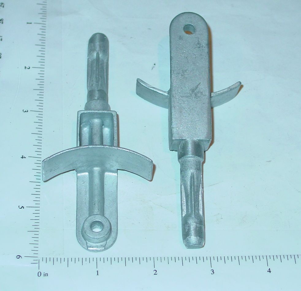 You are purchasing one of the parts as shown in the above picture. Photo shows both front and back but listing price is per ONE item. Nice cast zinc/aluminum alloy wheel strut for use on the Swan Hill Karry Car lumber carrier toy from the 1950's.. Use ruler in picture for sizing info. As with anything whether it is toy parts or full size car parts, some items may require some adjustment or fitting or slight modifications for use on your specific item. We do our best to get these replacement parts to as close to original specs as possible. If you are having difficulties with this, please feel free to message us for assistance. We are your one stop shop for all your toy restoration needs.