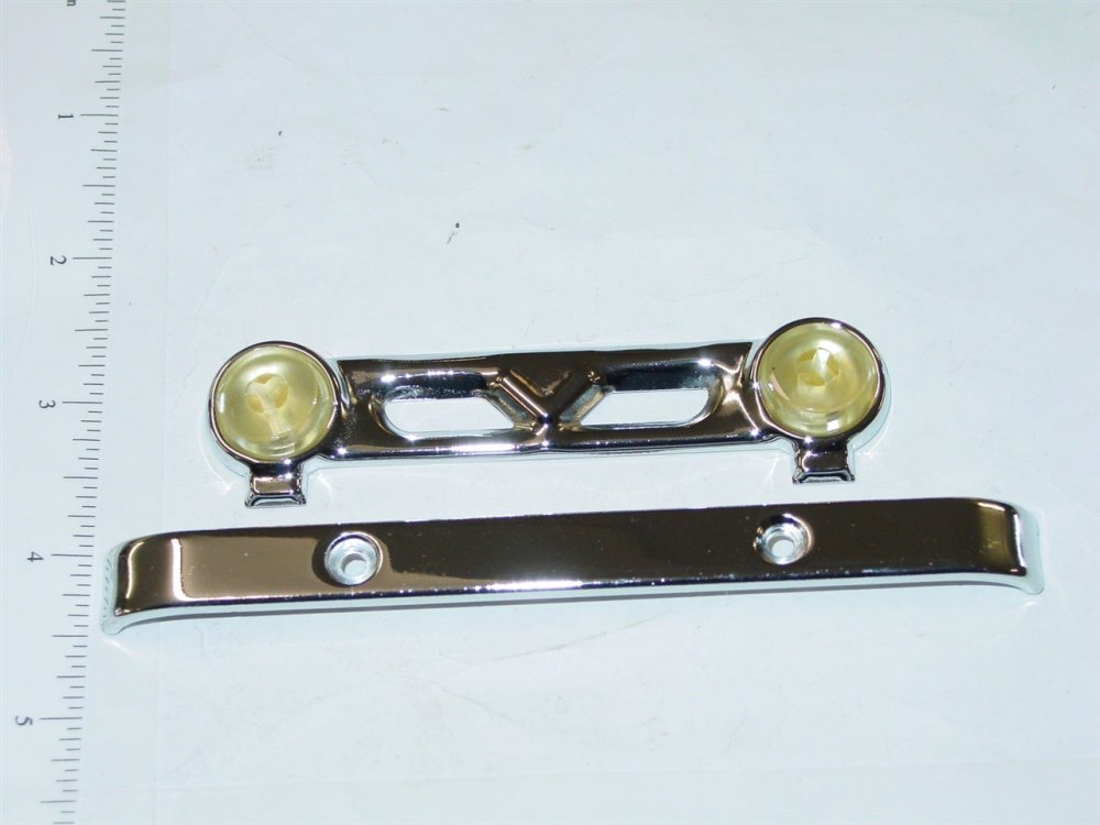 You are purchasing one set of the parts as shown in the above picture. Nicely made stamped steel with chrome plating grill and bumper plus the headlights for use on the old Tonka toy trucks from 1956 and 57. Grill measures appr. 4" by 3/4" and the bumper measures appr. 5-3/8" by 1/2". As with anything whether it is toy parts or full size car parts, some items may require some adjustment or fitting or slight modifications for use on your specific item. We do our best to get these replacement parts to as close to original specs as possible. If you are having difficulties with this, please feel free to message us for assistance. We are your one stop shop for all your toy restoration needs.