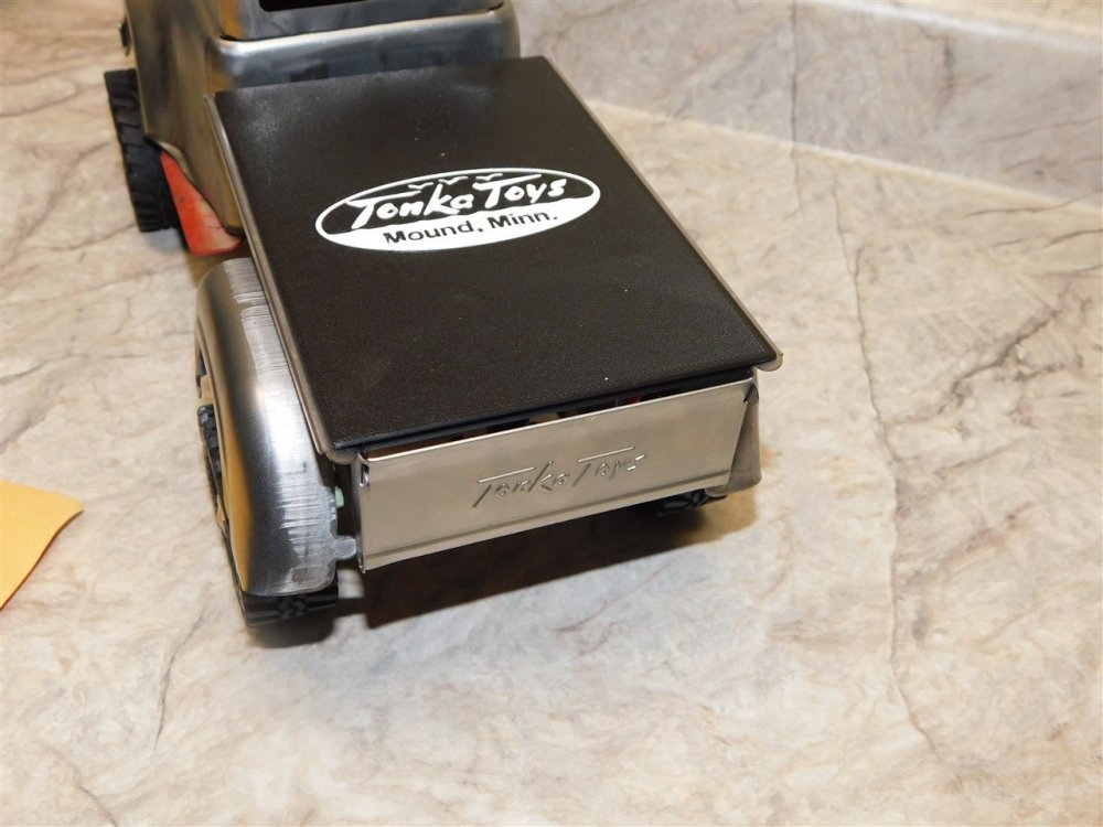 You are purchasing one of the part as shown in the above picture. Nicely made 3D printed plastic custom tonneau cover for the Tonka stepside pickup trucks. Logo is clear and crisp and printed directly for a nice professional look. Has a textured appearance like a soft tonneau would have and fits nice and clean as shown. As with anything whether it is toy parts or full size car parts, some items may require some adjustment or fitting or slight modifications for use on your specific item. We do our best to get these replacement parts to as close to original specs as possible. If you are having difficulties with this, please feel free to message us for assistance.**Vehicle in pictures are NOT for sale, they are EXAMPLES ONLY** We are your one stop shop for all your toy restoration needs.