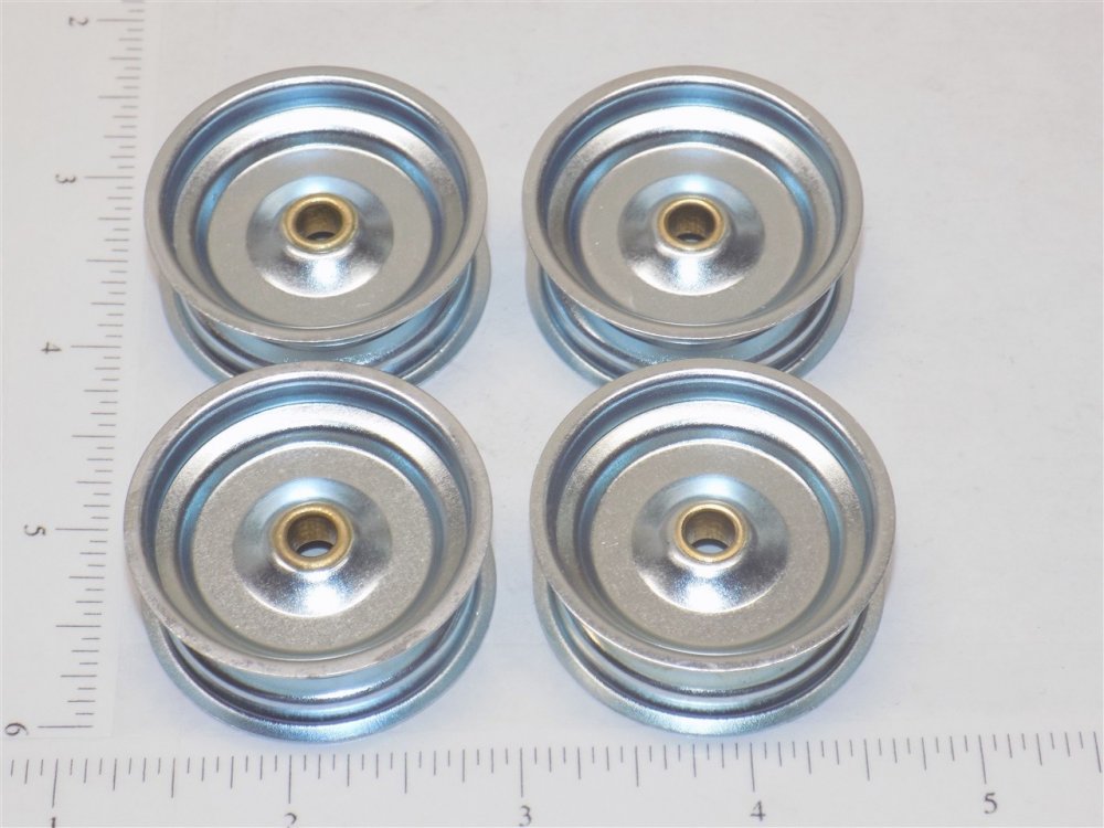 You are purchasing one set of four of the parts as shown in the above picture. Nicely made stamped steel with zinc plating shovel wheel for use on the Tonka shovels and cranes from the 40's and 50's. Early style that uses the narrow tracks. As with anything whether it is toy parts or full size car parts, some items may require some adjustment or fitting or slight modifications for use on your specific item. We do our best to get these replacement parts to as close to original specs as possible. If you are having difficulties with this, please feel free to message us for assistance. We are your one stop shop for all your toy restoration needs.