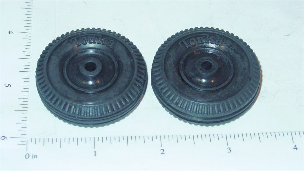 You are purchasing one pair of the parts as shown in the above picture. Nicely made rubber tire for use on an assortment of Tonka vehicles such as the rear of the Ser Vi Car, front of the utility tractor, spread pack, etc. As with anything whether it is toy parts or full size car parts, some items may require some adjustment or fitting or slight modifications for use on your specific item. We do our best to get these replacement parts to as close to original specs as possible. If you are having difficulties with this, please feel free to message us for assistance. We are your one stop shop for all your toy restoration needs.