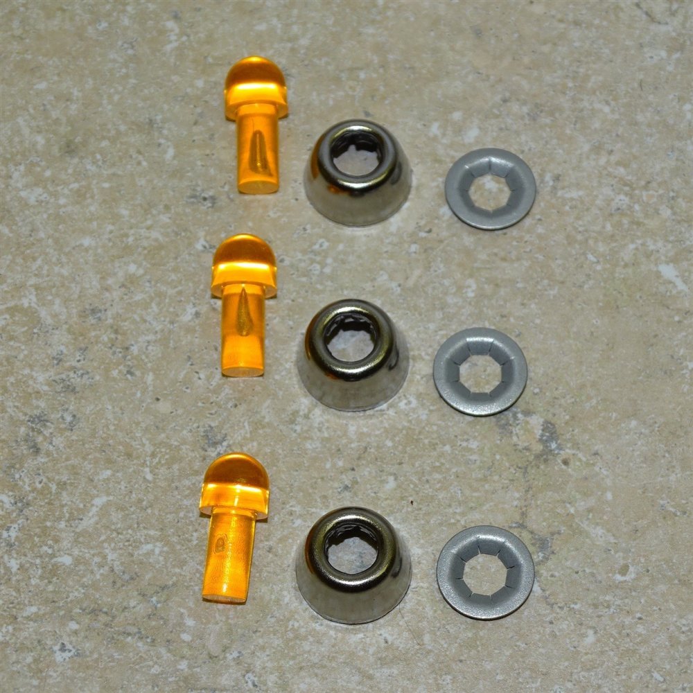 You are purchasing three (3) sets of the parts as shown in the above picture. Nicely made stamped steel with chrome plating bezel and plastic injection mold flasher light for use on the old Tonka trucks from the 50's and 60's. This is a custom color as Tonka never made these in amber but they are a perfect fit for your wreckers, hi-way trucks, etc. Spring clip shown in picture may be a slightly different style base on availability and functionality. As with anything whether it is toy parts or full size car parts, some items may require some adjustment or fitting or slight modifications for use on your specific item. We do our best to get these replacement parts to as close to original specs as possible. If you are having difficulties with this, please feel free to message us for assistance. Also see second picture with the dark background showing the light is a nice amber / orange much like the originals. We are your one stop shop for all your toy restoration needs.