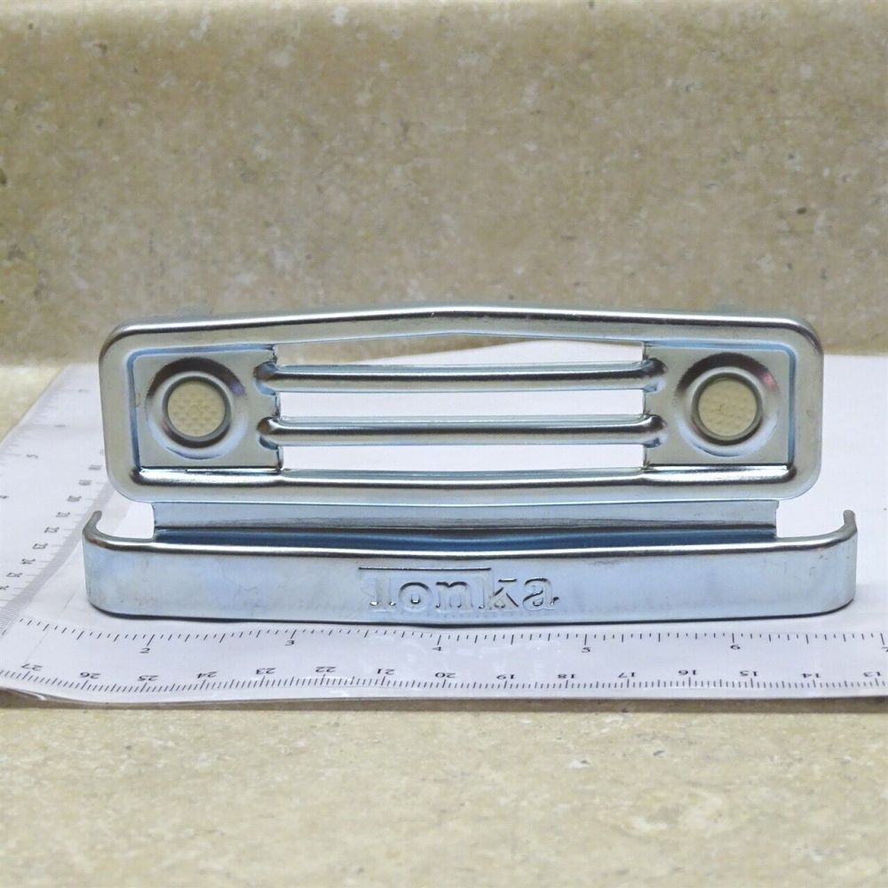 You are purchasing one of the parts as shown in the above picture. Nicely made stamped steel with zinc plating Tonka Dodge truck grill and (2) white cross hatch headlights, set. As with anything whether it is toy parts or full size car parts, some items may require some adjustment or fitting or slight modifications for use on your specific item. We do our best to get these replacement parts to as close to original specs as possible. If you are having difficulties with this, please feel free to message us for assistance. We are your one stop shop for all your toy restoration needs.