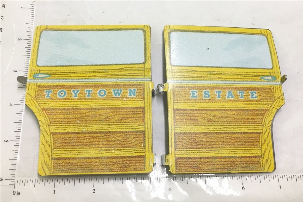 You are purchasing one set of the parts as shown in the above picture. Nicely made stamped steel side doors (right and left) for use on the Wyandotte Toytown Estate Woodie station wagon toy. View ruler in picture for sizing questions. They have the graphics printed and stuck on in the form of high quality vinyl and are available in both lighter and darker variations. Just to be clear, listing is for one PAIR of doors and does not include the car as that is shown for display of the parts only. If you're looking for the dark doors, please use part number WYP-022d.As with anything whether it is toy parts or full size car parts, some items may require some adjustment or fitting or slight modifications for use on your specific item. We do our best to get these replacement parts to as close to original specs as possible. If you are having difficulties with this, please feel free to message us for assistance. These particular doors are fitted to the car pictured but your car may have slight variations in which you'll need to simply bend the tabs or shape the door slightly for proper fitment. If you damage the items while attempting to fit to your toy we will NOT accept returns on them so please be careful in this process. We are your one stop shop for all your toy restoration needs.
