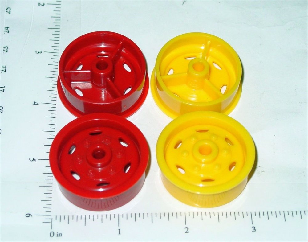 You are purchasing one of the parts as shown in the above picture. Picture shows both colors as well as front and back but listing price is for ONE YELLOW wheel. only. Nicely made injection mold plastic wheel for use on the Wyandotte vehicles from the 50's and 60's. Unfortunately I do not have the tires for these currently available. View ruler in picture for sizing questions. As with anything whether it is toy parts or full size car parts, some items may require some adjustment or fitting or slight modifications for use on your specific item. We do our best to get these replacement parts to as close to original specs as possible. If you are having difficulties with this, please feel free to message us for assistance. We are your one stop shop for all your toy restoration needs.